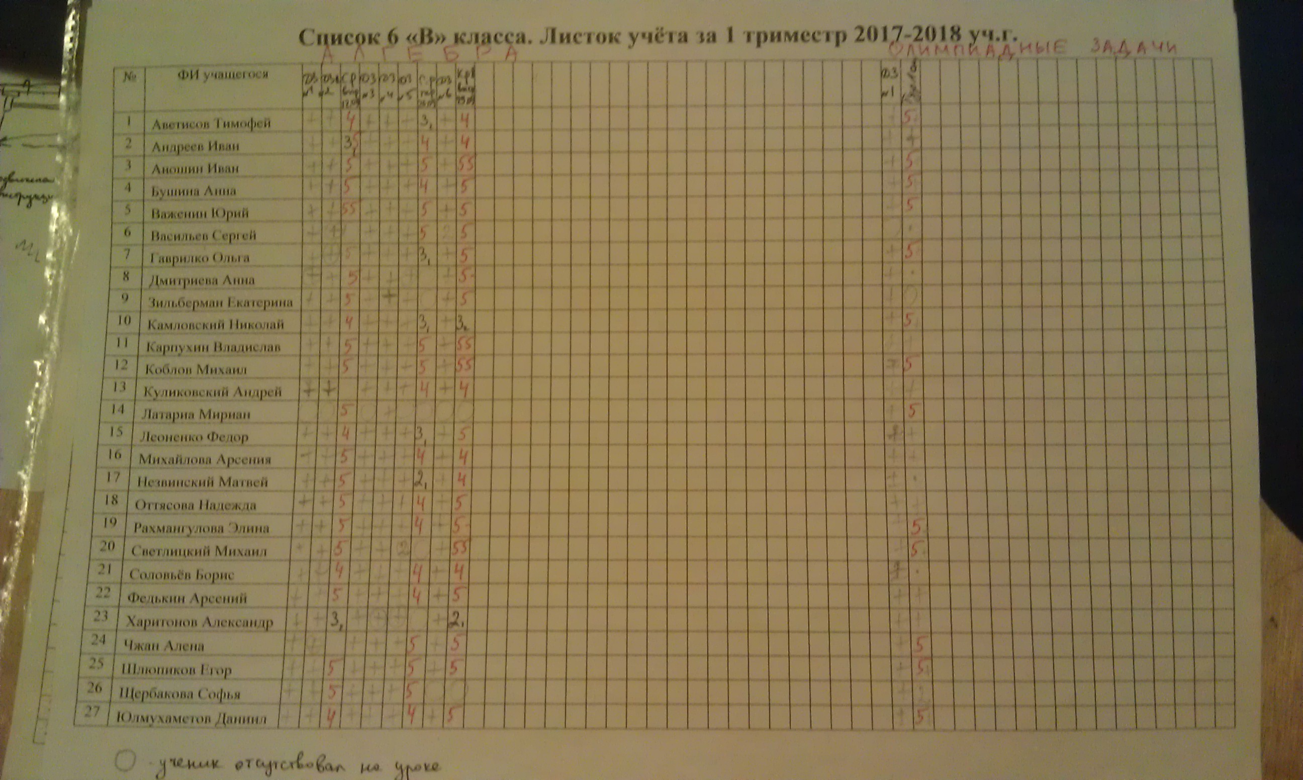 Электронный журнал пока не заработал - нет расписания. Оценки выставлять невозможно. Высылаю пока свой табель оценок по математике со списком ДЗ. По геометрии пока оценок нет.