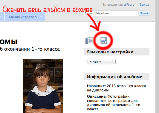 Находясь в альбоме, нажать на дискетку - машина подумает (достаточное время, так как она Вам будет готовить архив) а потом предложит сохранить файл - в этом архиве фото всего альбома в оригинальном качестве. Так же если Вы выбрали фотографию и нажмете дискетку - то сохраниться только одна фотография в оригинальном качестве.